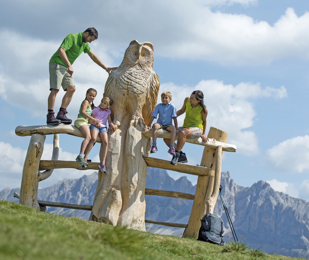 Auf diesem, Kinderwagen tauglichen, Panorama-weg sorgen zahlreiche, mitten in die Natur gebaute und lehrreiche Spielgeräte aus Holz für ein besonderes Urlaubserlebnis.